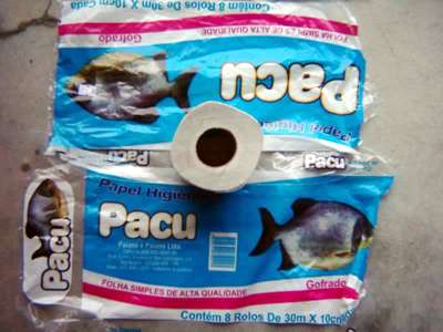 Mas, além disso tudo, o pacu empresta seu nome e sua bela figura para uma marca de papel higiênico. Isso mesmo, o Papel Higiênico Pacu. Francamente...