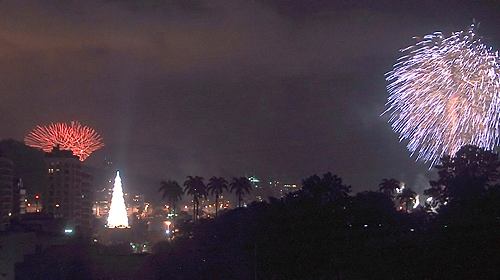 Da janela de casa, os fogos de Copacabana, à esquerda, e os de Ipanema, à direita. Aqueles da Lagoa, que deveriam durar sete minutos, aconteceram durante pequenos sessenta segundos, se tanto. Acho que deve ter rolado um certo chabu. Mas todos os outros compensaram esta ausência.